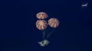 Su nave espacial Orion atravesó la atmósfera terrestre a más de 38.000 km/h, con temperaturas superiores a los 2.700 grados Celsius generadas por la fricción, y amerizó sin problemas en el océano Pacífico, gracias a grandes paracaídas.