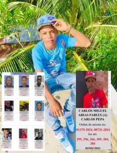 Carlos Miguel Arias Fabian (Carlos Pepa) de 20 años, fue detenido durante una orden de allanamiento y captura, ejecutada en una vivienda de la calle primera, sector Invi II, proximo al puente, municipio de Quisqueya.