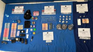 Los agentes y fiscales, confiscaron además, 13 armas de fuego, 30 cuchillos y machetes, 09 vehículos, 82 motocicletas, 59 radios de comunicación, 515 celulares, 236 balanzas, 01 chaleco antibalas, 05 tragamonedas, decenas de fundas, tijeras y otras evidencias utilizadas para el empaque de sustancias narcóticas.