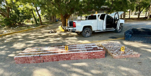 La mercancía fue encontrada dentro de una camioneta marca Chevrolet, modelo Colorado W/T 4×4, año 2019, color blanco, la cual fue abandonada por personas en proceso de identificación tras colisionar con un árbol en la avenida principal del distrito municipal El Rubio, específicamente en el paraje El Corozo.